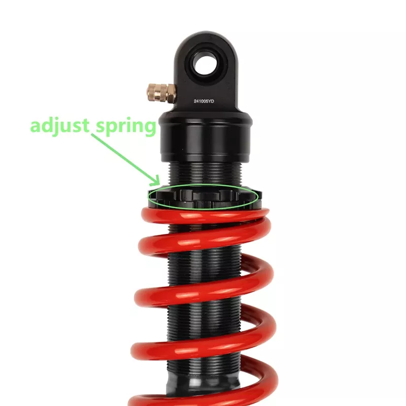 শক অ্যাবজরবার অ্যাডজাস্টেবল স্প্রিং প্রিলোড বৈশিষ্ট্য, রাইডারদের পরিবর্তন করতে সক্ষম করে, বসন্তকে আরও শক্ত করতে সামঞ্জস্য করুন, বসন্তকে নরম করার জন্য সামঞ্জস্য করুন